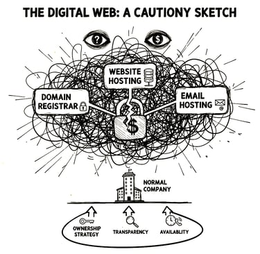 When your digital assets are scattered across various "hoisters" and registrars, you become fully dependent on the web designer to act as the middleman. If you want to move or change a service, you might find yourself: